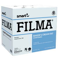 Filma Baker's Cream Fat adalah lemak nabati berkualitas tinggi yang terbuat dari minyak nabati pilihan dan telah dimurnikan dan dihilangkan baunya. Filma Baker's Cream Fat diformulasikan dari minyak nabati yang "Bebas Lemak Trans" (Trans Fat Free) dan antioksidan alami Tocopherol (Vit E). Dengan daya kriming yang sangat baik dan titik leleh yang rendah, Filma Baker's Cream Fat sangat cocok untuk pembuatan krim pengisi untuk biskuit dan wafer serta krim hiasan kue. Dengan aroma vanilla sebagai masking flavor, akan menambah aroma yang lebih wangi.