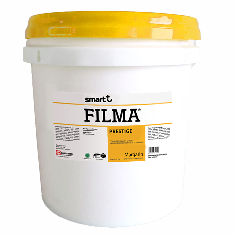 FILMA Prestige Butter Blend Margarin adalah margarin bermutu tinggi yang dibuat dari minyak nabati pilihan dan telah dimurnikan dan dihilangkan baunya. Dengan campuran lemak susu, Filma Prestige memiliki tekstur dan warna seperti butter. Filma Prestige sangat cocok digunakan untuk aplikasi produk bakeri bermutu tinggi dengan aroma khas susu dan butter.