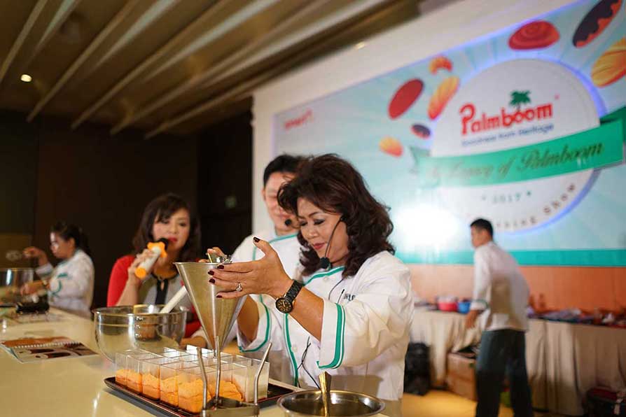 Untuk membuktikan kemampuannya mewariskan kelezatan, Palmboom Margarine akan menggelar acara Grand Baking Demo Warisan Kelezatan Palmboom pada Kamis, 17 Maret 2016 di Hotel Alila Jakarta. Di acara ini akan didemonstrasikan bagaimana membuat resep-resep kue klasik seperti Roti Tuna Pandan, Lapis Mascovis Marmer Roll, Ombeykoek Kenari, Rosemary Beef Kastangel, Rainbow Cookies dan Caramel Mocca Tart. Semua resep ini akan dibuat menggunakan Palmboom Cake Margarine.