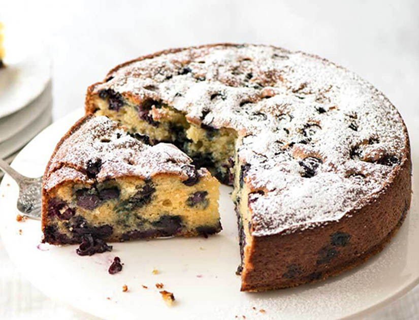 Masukkan semua blueberry yang telah dibalut tepung. Aduk kembali hingga rata. Tuang ke dalam loyang dan taburkan topping blueberry yang telah disisihkan.