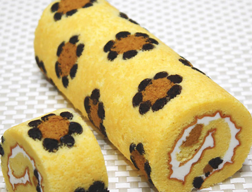Tuangkan adonan bolu gulung pada loyang yang sudah ada adonan motif.