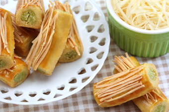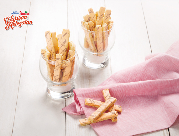 2. Lalu masukkan bahan C, aduk rata. Tipiskan adonan setebal 6 mm kemudian dipotong dengan ukuran 6x2 cm.