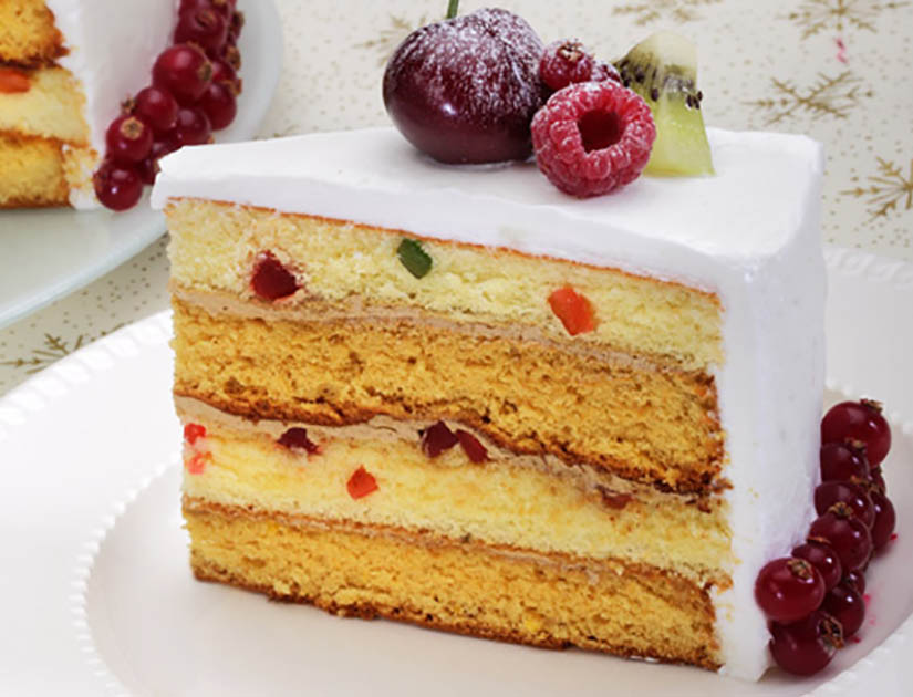 Cara membuat Fruit Layer Cake (2 loyang bulat diameter 22 cm tinggi 2 cm) :