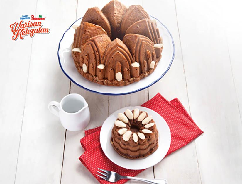 2. Lalu tambahkan bahan C, aduk rata. Tuang adonan pada loyang tuban Ø 24 cm dan atasnya diberi kenari.