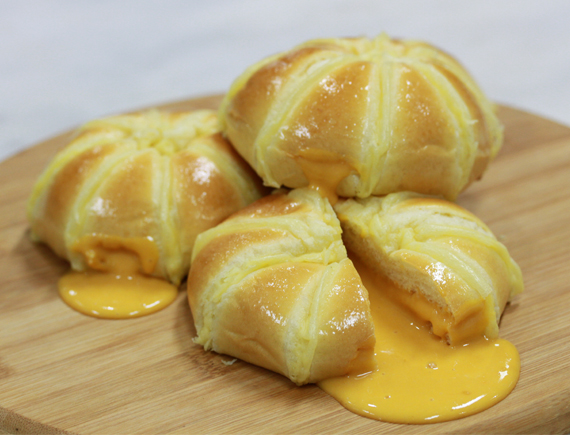 - Masak semua bahan hingga mengental, spuitkan adonan diatas roti yang siap dipanggang.