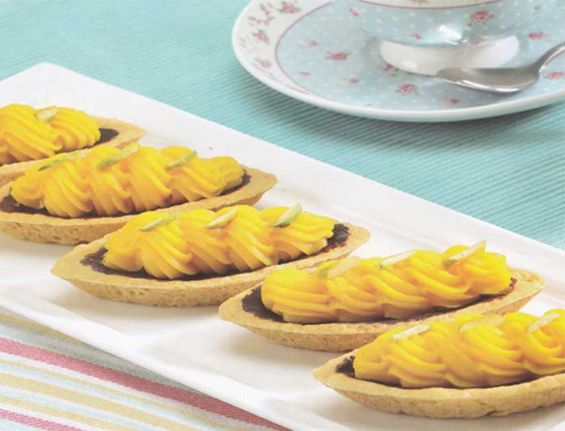- Lalu spuitkan Pumpkin Vla ke dalamnya dan taburi dengan kacang pistachio cincang pada bagian atasnya.