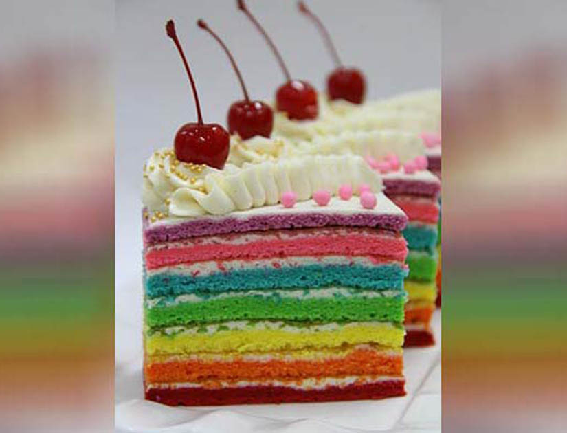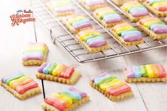 6. Masukkan adonan ke wadah satu persatu hingga membentuk warna pelangi.